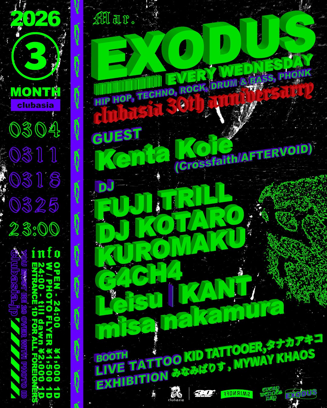30周年を迎え空間とSOUNDが強化された、新たなclubasia 3月の"EXODUS"は要チェック。
