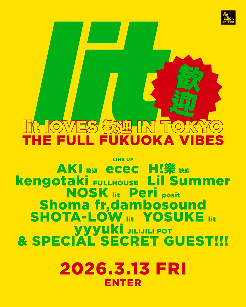 今回はlitのラブコールで、巷を賑わす福岡のパーティ歓迎とフィーチャー。福岡のシーンを席巻するエネルギッシュなバイブスを最大限に体感できるエクスクルーシブな一夜に!