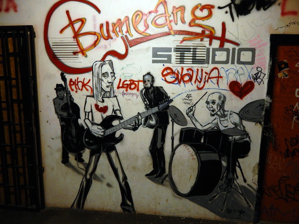 ワークショップが行われているBIGZという建物は旧ユーゴスラビア時代には印刷所だった古い建物で、現在はスタジオやアトリエなどが入った文化施設として使われている。中はあまりきれいではないが、建物の壁はグラフィティで埋められアンダーグラウンドな雰囲気を持つ。屋上のバーでは夜にライヴが行われ、夜景を望みながら地元ミュージシャン達のセッションを楽しむことができる。