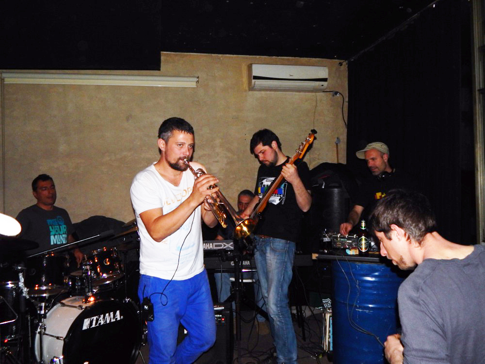 別な日にこのライヴスペースでUrosに連れられジャム・セッションを観に行った。バンド構成はトランペット、ドラム、ベース、パーカッションにUrosがDJで入っていた。セッションをリードしているのはトランペット奏者だが、ピックアップを付けて足元のエフェクターを操作している。