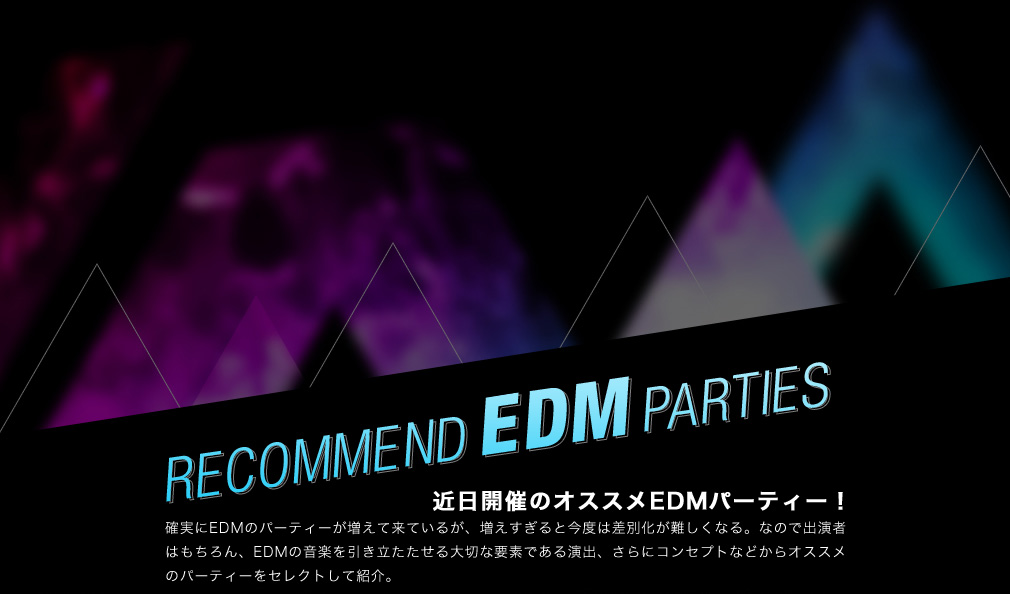 こちらもTomo Hirataが始動させたパーティーだが、彼が主宰しているレーベル〈EDMF(Electronic Dance Music Force)〉によるレーベルショウケース的意味合いが強い。また特徴的なのが、普段は土曜日のデイタイム開催として10代も入場可能となっている。今回はクリスマススペシャルとして夜帯での開催となり、しかも女性は入場無料。