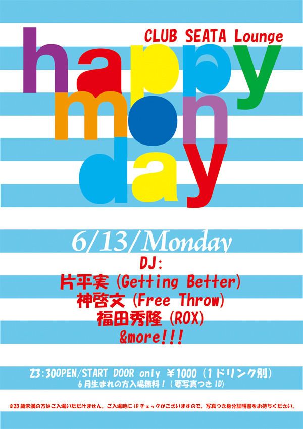 ※6月生まれの方、写真付IDご提示で入場無料(ドリンクチャージのみ)!!!