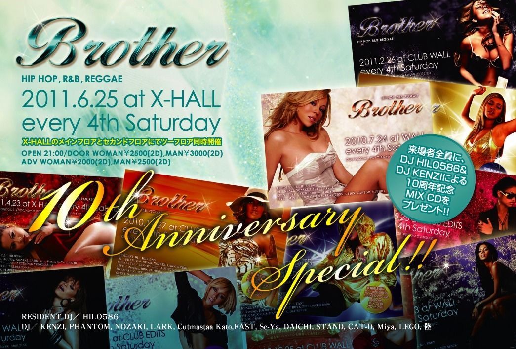10年間レジデントDJをつとめるこのパーティーの主催者『DJ HILO586』を筆頭に、KENZI,PHANTOM,NOZAKI,Cutmastaa Kato,LARKなど10年以上のキャリアをもつ実力派DJ達が集結し、今回はCLUB PARTYの軸でもある『DJ』オンリーで、大須に誕生したのVIPな大箱クラグ『X-HALL』のメインフロアとセカンドフロアにてツーフロア同時開催!二つのフロアで、タイプの違う二つのGOOD MUSICが、二カ所でGOOD TIMEをうみだし、1つの歴史的10周年PARTYをつくりあげる!!誰が来ても一晩を通して踊り明かせ楽しめる最高のPARTYになること間違いなし!!おまけに、この日の来場者には、DJ HILO586とDJ KENZIによる『BROTHER 10周年記念 Mix CD』をプレゼントされちゃうぞ!!