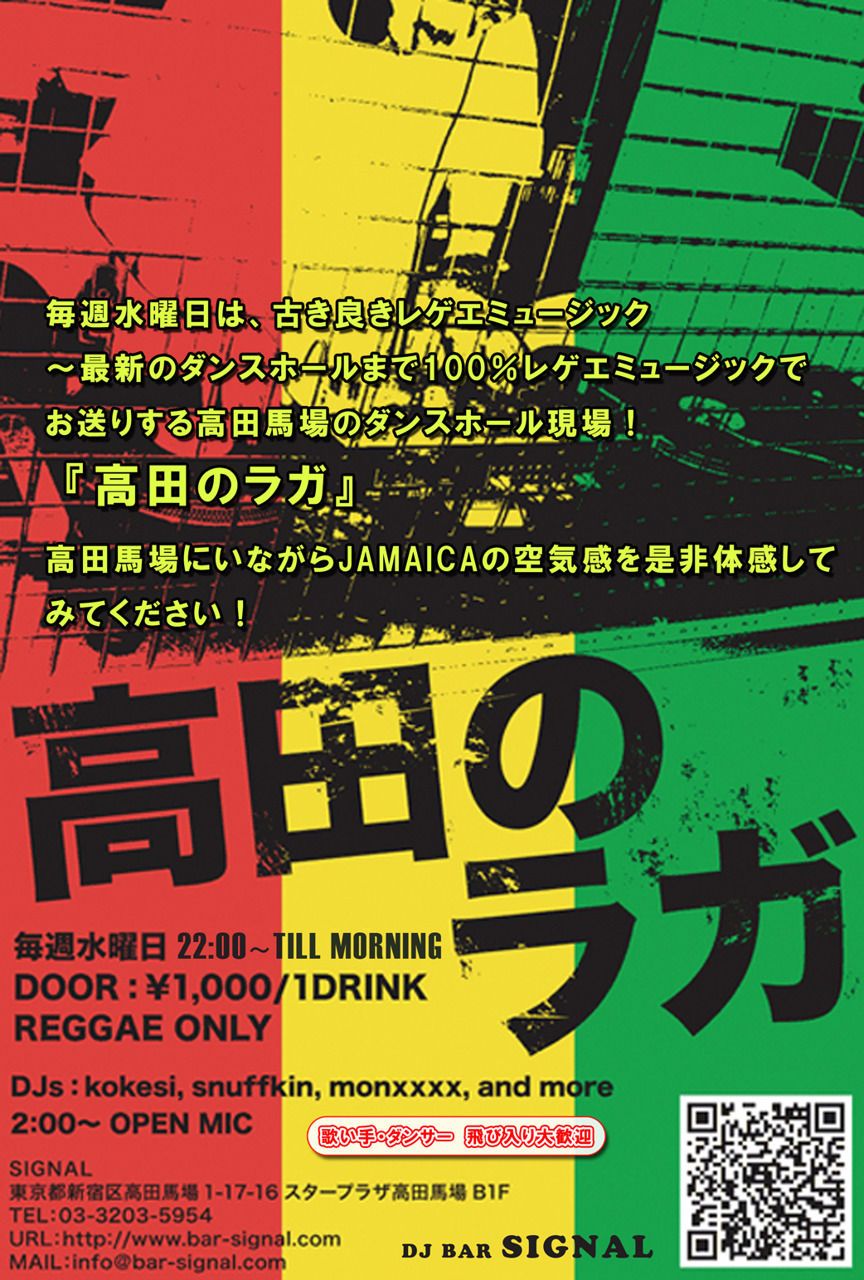 毎週水曜日は、古き良きレゲエミュージック~最新のダンスホールまで100%レゲエミュージックで、お送りする高田馬場のダンスホール現場! 『高田のラガ』高田馬場にいながらJAMAICAの空気感を是非体感してみてください!