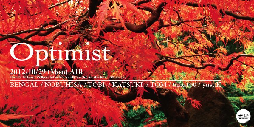 階段を下りるたびに鳴り響く重厚なサウンド。体に染みわたる低音、空中でうねりを上げる高音とのコントラストは非日常的空間に他ならない。そんな上質な音の心を澄ませ、身体をフロアに委ねることによりあられる高揚感はここでしか得られない。ダンスミュージックの持つ力は、人の心を揺さぶり、刺激し、そして感動と興奮へと誘う。その事実は未来永劫変わらないであろう。ただ、今のクラブカルチャーの課題は、そうした空間をいかに創造し続けるかであろう。今こそ純粋にこの空間を心の底から楽しむ必要がある。AIRとOPTIMISTが想像する「音」の世界をじっくりとご堪能あれ。