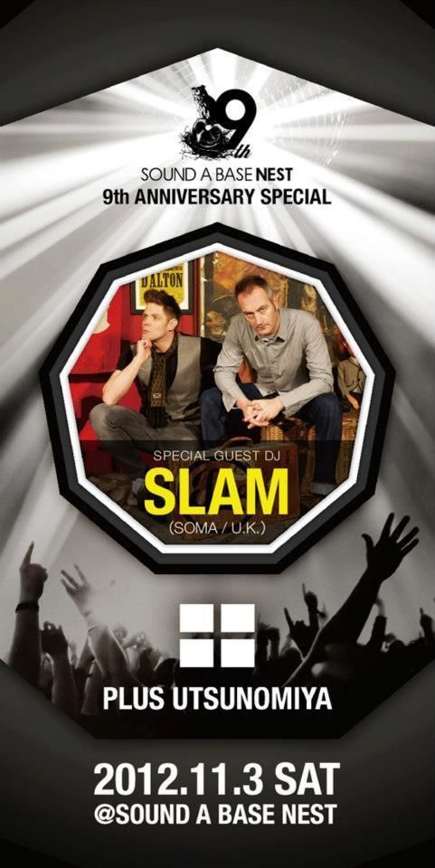 SOUND A BASE NESTの9周年アニバーサリーに相応しいBIG GUESTがUKより登場!!世界的に有名なUKテクノレーベル"SOMA"のオーナーにして世界的DJでもある2人組"SLAM"を奇跡のブッキング。地方都市では中々お目にかかれないこのスペシャルなゲストがNESTの9周年に花を添える!!