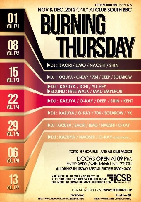 CLUB SOUTH BBCの木曜日の帯イベント-BURNING THURSDAY-