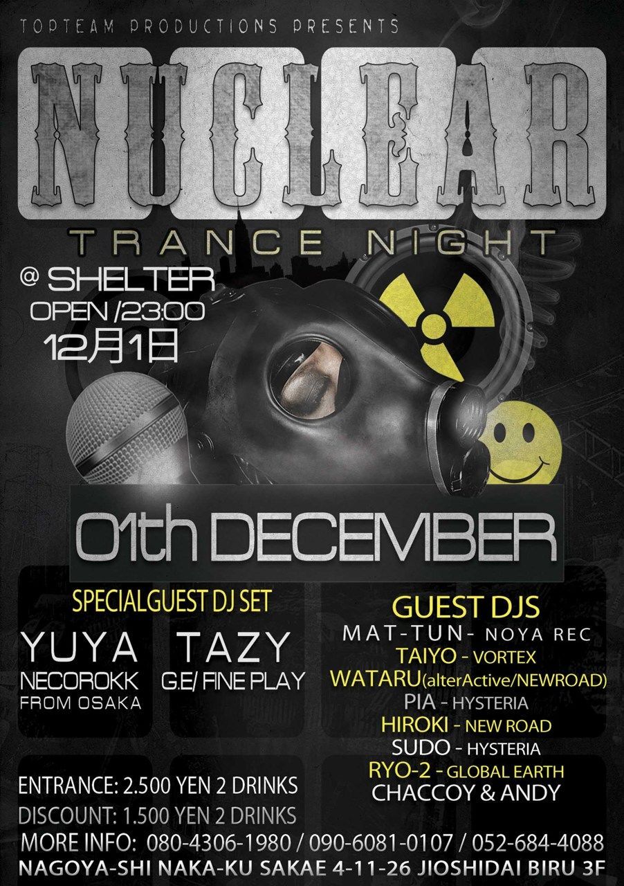 2012.12 01 DEC NUCLEAR TRANCE NIGTH クーポン DUBSTEP HOUSE ELECTRONICA TRANCE ログインしてクーポンをゲット 0 Shares Facebook Twitter google Line DATE: 2012-12-01 SAT OPEN: 23:00 VENUE: PRICE: 2,500 LINE UP: