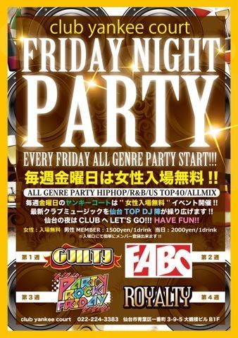 EVERY FRIDAY -毎週金曜日女性入場無料- @yankee court