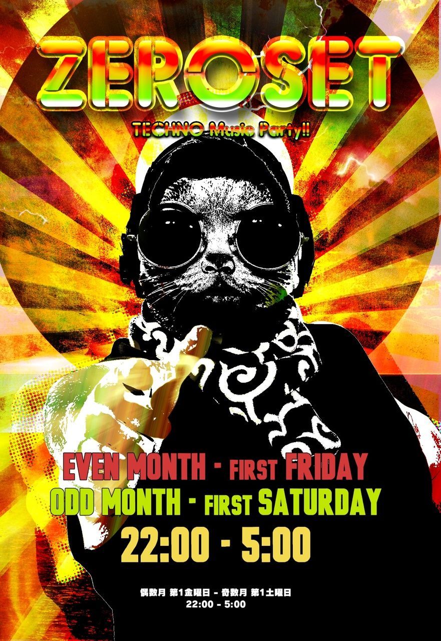 地獄TECHNO Party ZEROSETレギュラーDJに Acid Nagata,itou susumu ,michio Taichouを軸に、伝説のホームランバッター ドラッグマシン マグワイア級のGUEST DJ,GUEST LIVE ARTISTが毎月、出場しCLUB&BAR 444quad スタジアムを賑わしている!