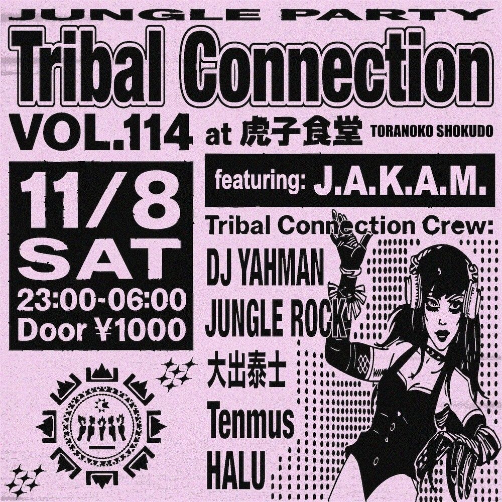 2009年に始動したTribal Connectionは、DJ YAHMAN、JUNGLE ROCK、大出泰士、Tenmus、HALUの5人で構成。各自のバックグラウンドを軸に多角的なジャングル活動を行い、JUNGLE PARTY Tribal Connectionを奇数月第2土曜に渋谷の虎子食堂にて開催中。2023年11月の開催通算100回目/創立14周年祭は、開始直後に満員御礼。2024年、創立15周年。