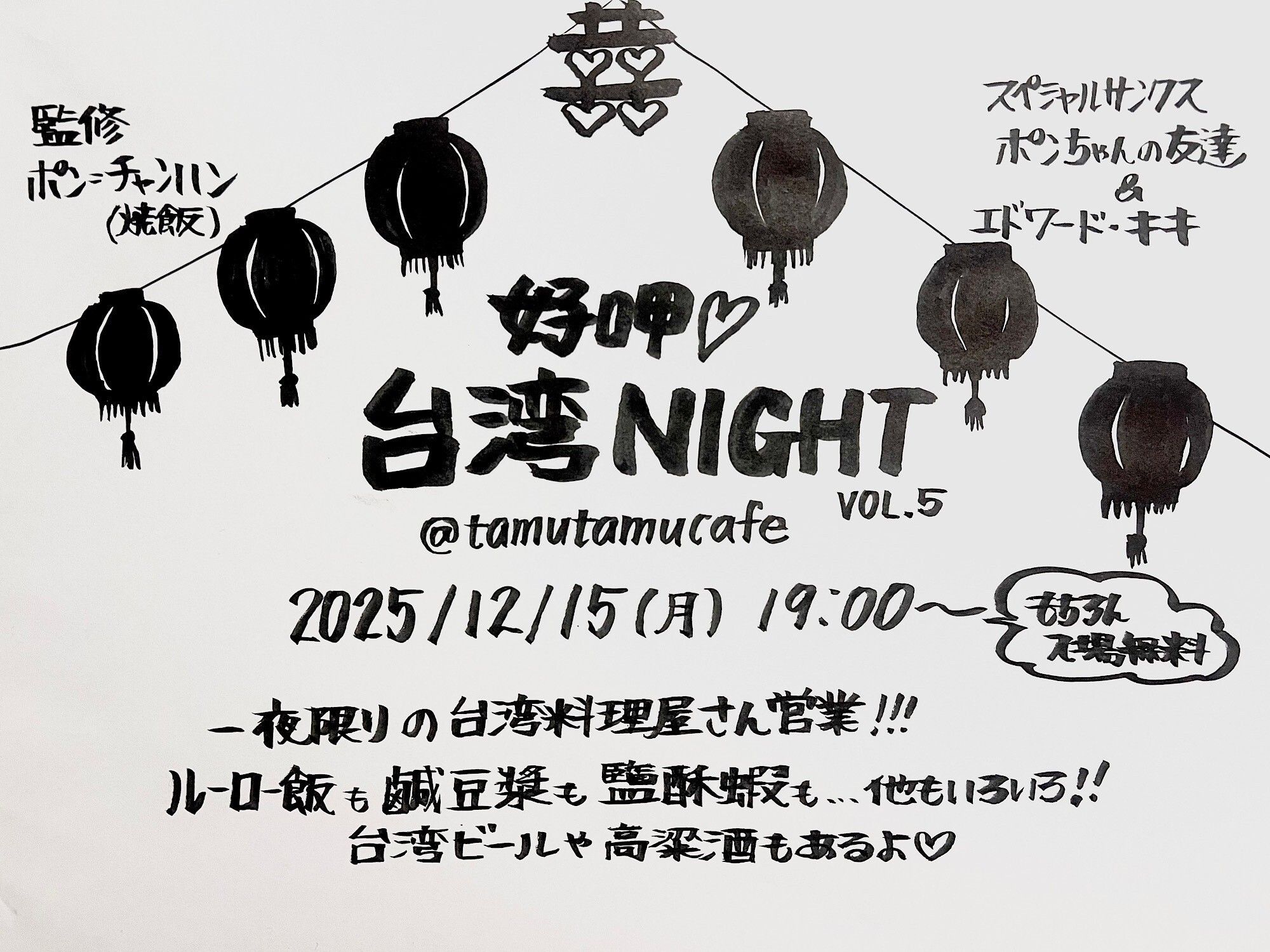 タムタムカフェによる一夜限りの台湾屋台な夜第5弾!『台湾ナイト』久々開催。ルーロー飯、しょっぱい豆乳スープ、海老胡椒炒め、普段出していない台湾料理ばかり◎台湾直送の材料沢山頂きました。special thanks!ポンちゃんの友達 & エドワード+キキ♡