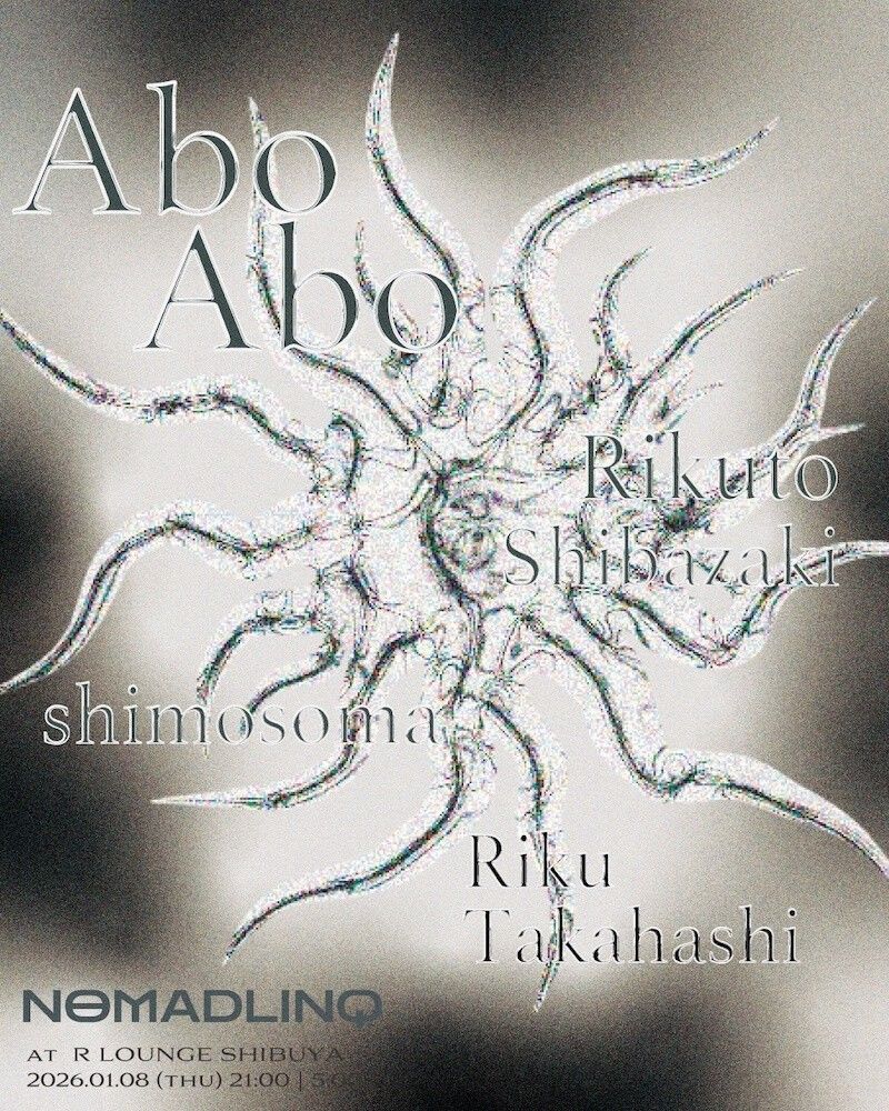 世界各国で広がりを見せる実験的ファストテクノシーンのキーパーソン Abo Aboと、Nomadlinqの3人が作り上げる一夜をぜひ体感してほしい。