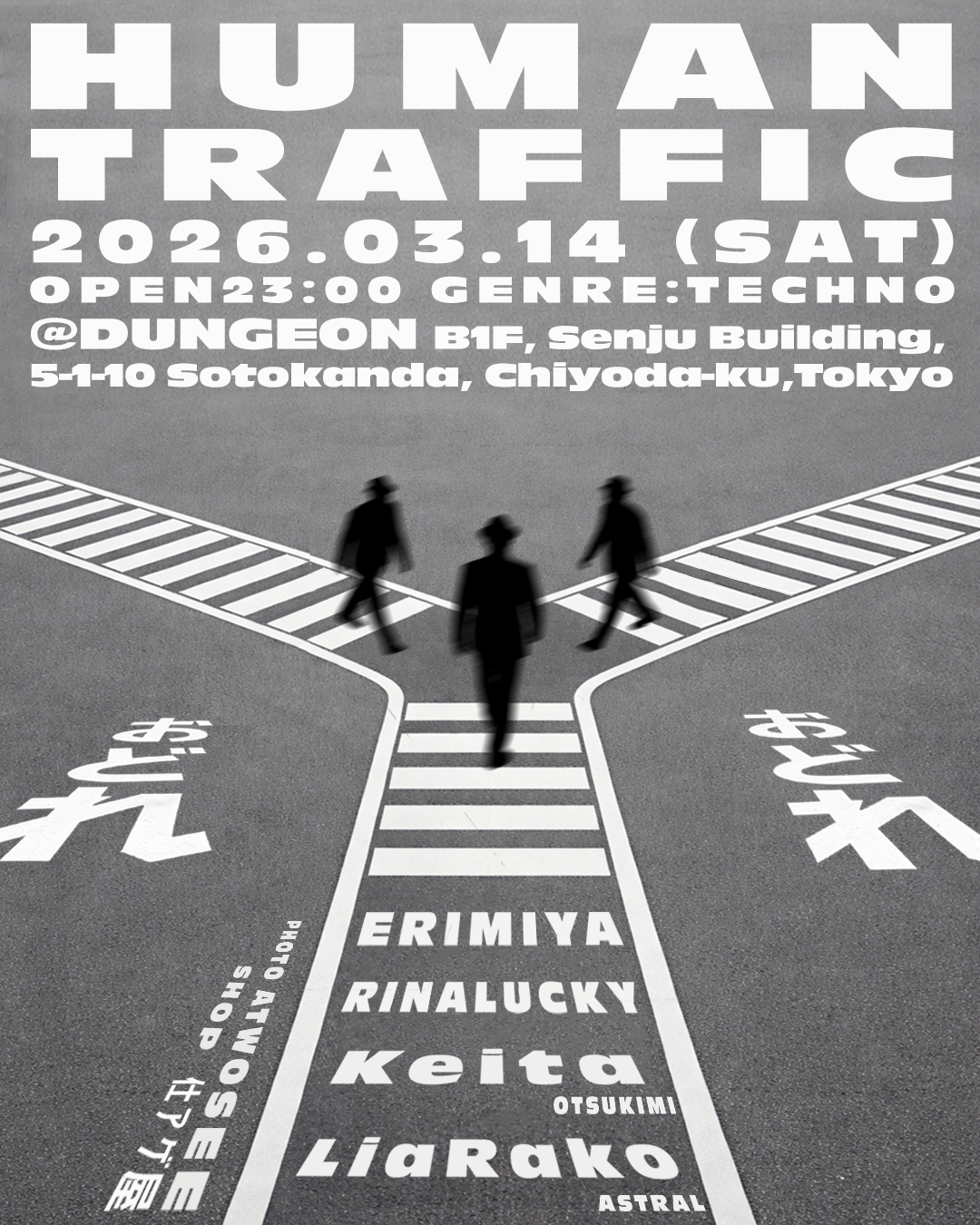 1991年生まれの3人のオーガナイザー。3人それぞれのパーティーでの経験と出会いが交差し、新たな化学反応が生まれる。目的はシンプルに”踊ること”への没頭。深く潜りながらも芯のあるグルーヴで身体は自然と動き、交わり、繋がる。今回は、安心して身体を預けることのできる、同世代の実力派4名をキュレートした。