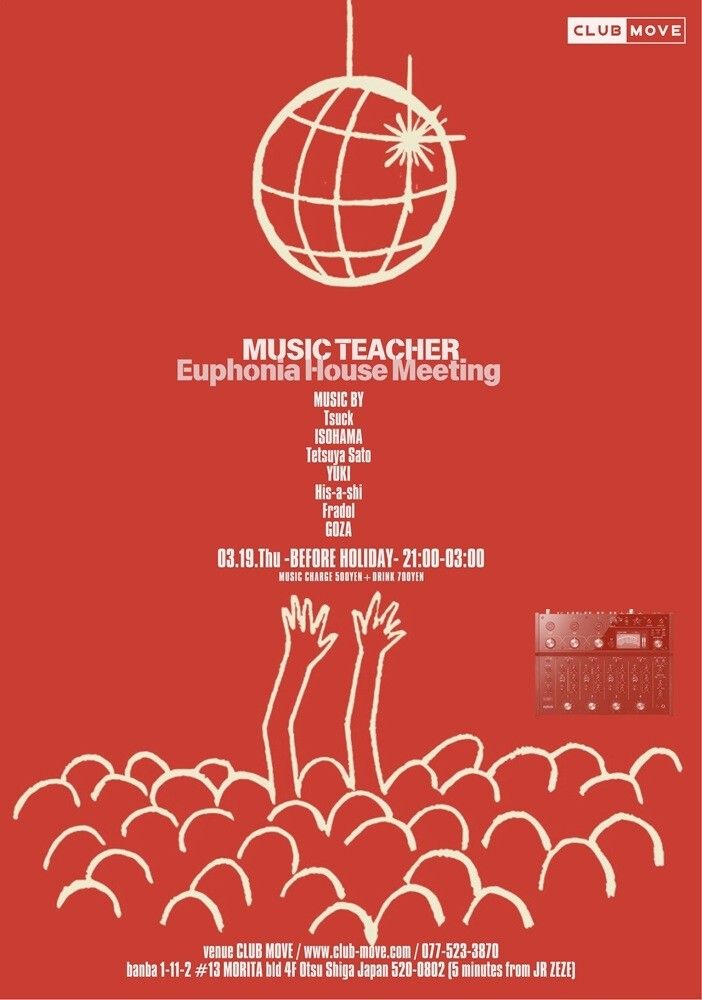 この日はMOVE界隈の様々なイベントからHOUSEのDJが集います。"AlphaTheta" 社のロータリーミキサー "euphonia" でいつもと違った音もお楽しみ下さい!