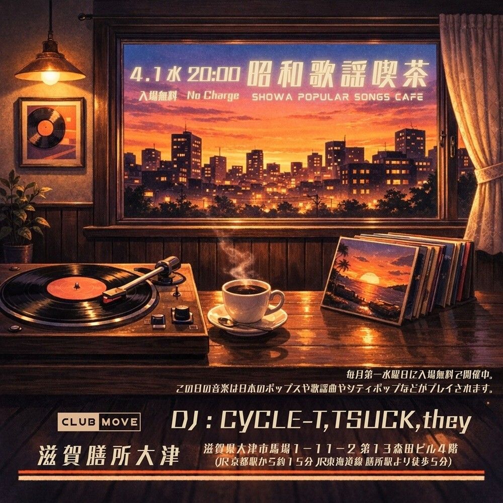 Held on the first Wednesday of every month, admission is free.The music on this day will be Japanese pop and city pop.