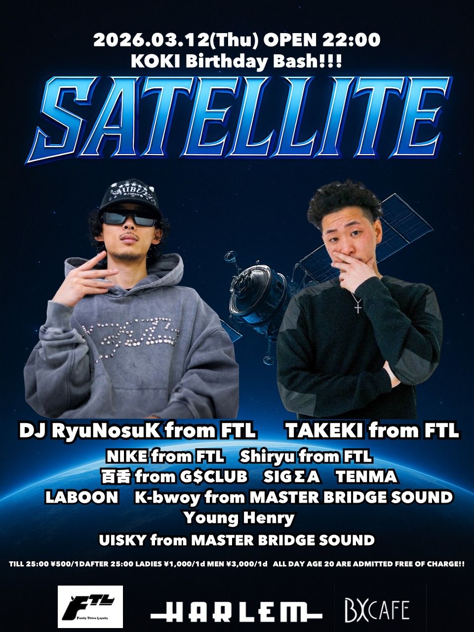 - ※ TILL 25:00 ¥500/1d ※ AGE 20 ARE ADMITTED FREE OF CHARGE ALL DAY!!