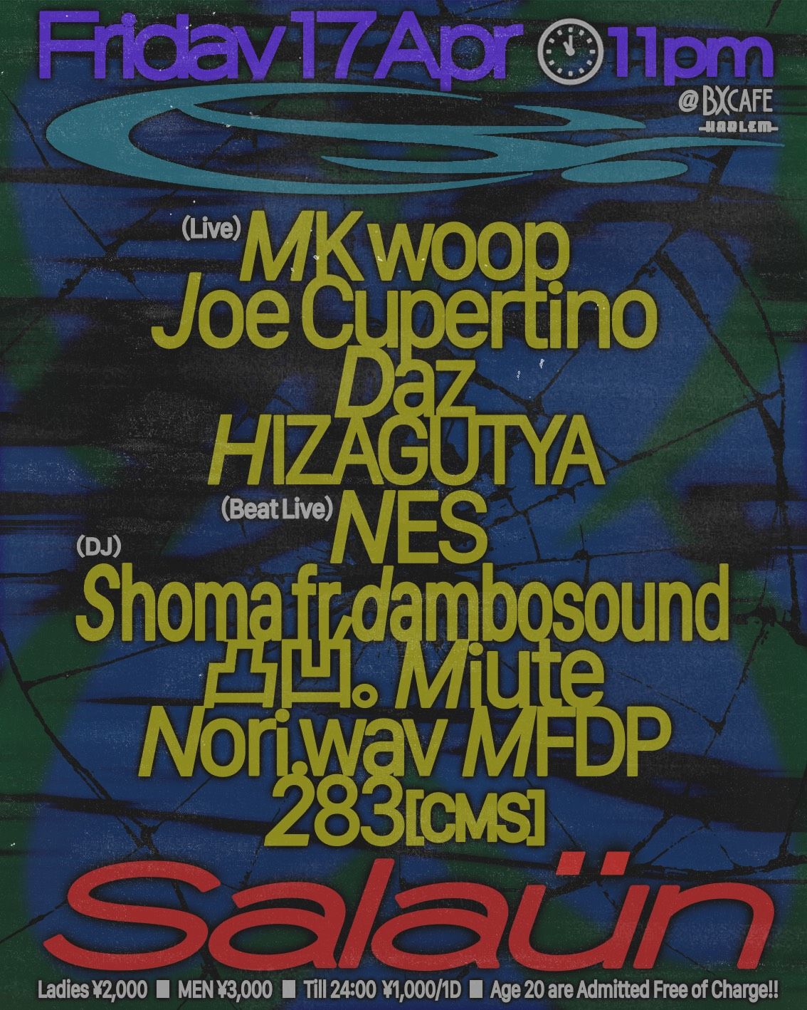 - LADIES ¥2,000 MEN ¥3,000 ※ till 24:00 ¥1,000/1d ※ AGE 20 ARE ADMITTED FREE OF CHARGE!!