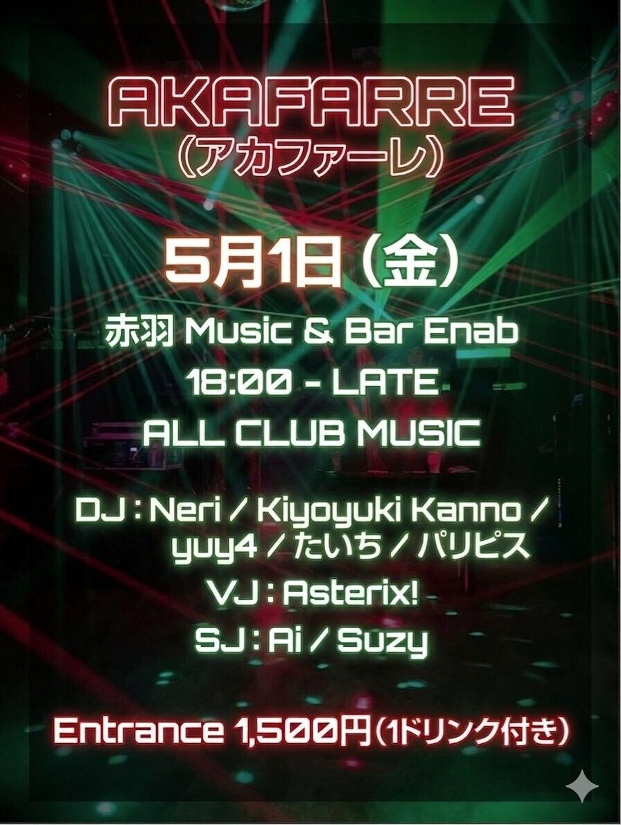 赤羽 Music & Bar Enabにて、オールジャンルのクラブナイトを開催します。