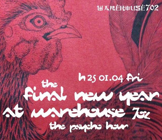 VIEWMORE 04 JAN THE FINAL NEW YEAR at WAREHOUSE702 -THE PSYCHO HOUR- @ 最初で最後…。サイケデリック・アワーがメインのA HAPPY NEW YEAR PARTYをWAREHOUSE702で遂に決行!2013年、年明けシーズンを、BPM145でアップビートに彩るクセ者が勢揃い。 クーポン TRANCE