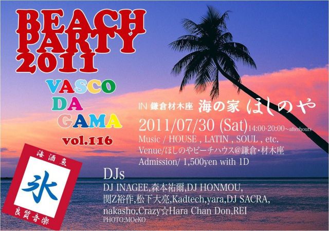 VIEWMORE 30 JUL VASCO DA GAMA vol.116 BEACH PARTY 2011@鎌倉材木座海岸ほしのやビーチハウス @ 開催6年目、毎年浜に人が溢れるHAPPY空間!! DISCO ALLMIX SOUL HOUSE