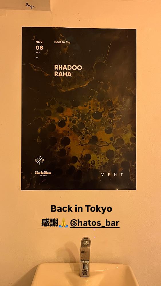 さて、では大変遅くなりましたが、昨年11月に行われました Rhadoo / Beat In Me のレポートを、コンパクトにお伝えしたいと思います。僕のSNS抜粋と共にお届けします。