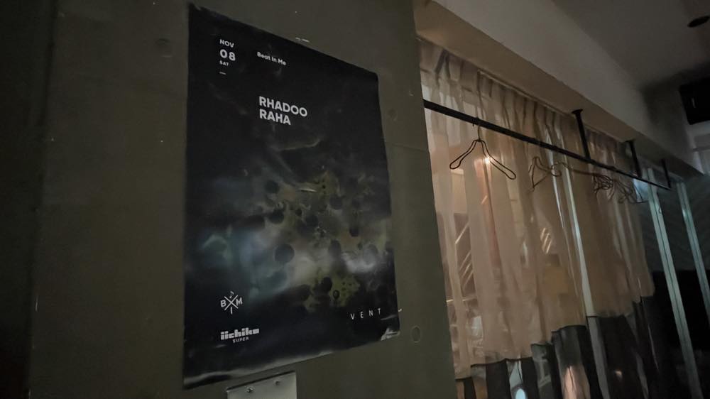 フロアーはいつ行ってみても常にパンパンな状態が続いていましたね。今までのBeat In Meのパーティーの中でも最も人の密度が高く、フロアー内をくまなく巡回するのが今回はとても大変でした。いつも毎回そうではありますが、このパーティーはとにかく、お客さんみんなが、Barの前で喋っているのではなくフロアーに飛び込んでいく人ばかりで、Rhadooの音を聴きに来た、踊りに来たという人が来場者のほとんどであるという素晴らしい事実をいつも以上に感じさせてくれました。