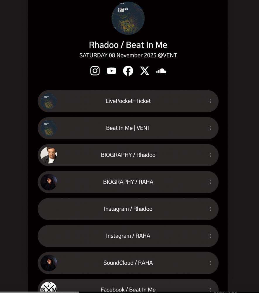 今週土曜日のRhadoo / Beat In Me、いよいよあと3日後となりました。