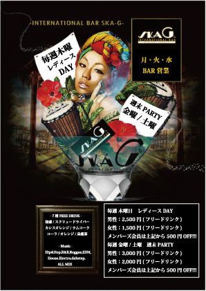 [LADY'S TIME] 21時〜23時迄の間にご来店頂いた女性のお客様に限り500円で入場できます。