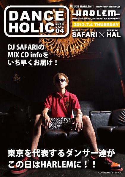 2013.07 04 THU DANCE HOLIC ALLMIX HIPHOP Facebook Twitter DATE: 2013-07-04 THU OPEN: 22:00 VENUE: HARLEM PRICE: ¥3,000 LINE UP: GUEST DJ: SAFARI, HAL DJ: SHEIKER, SELECT, shoWWgo DANCE SHOWCASE: CHECK THE NEXT HARLEM MAG or FLYER Facebook Twitter