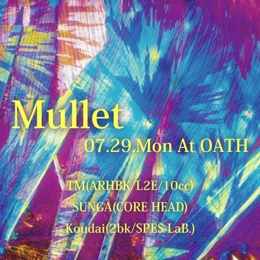 2013.07 29 MON Mullet HOUSE Facebook Twitter DATE: 2013-07-29 MON OPEN: 20:00 VENUE: OATH PRICE: LINE UP: DJ: TM(ARHBK/L2E/10cc) SUNGA(CORE HEAD) Koudai(2bk/SPES-LaB.) Facebook Twitter