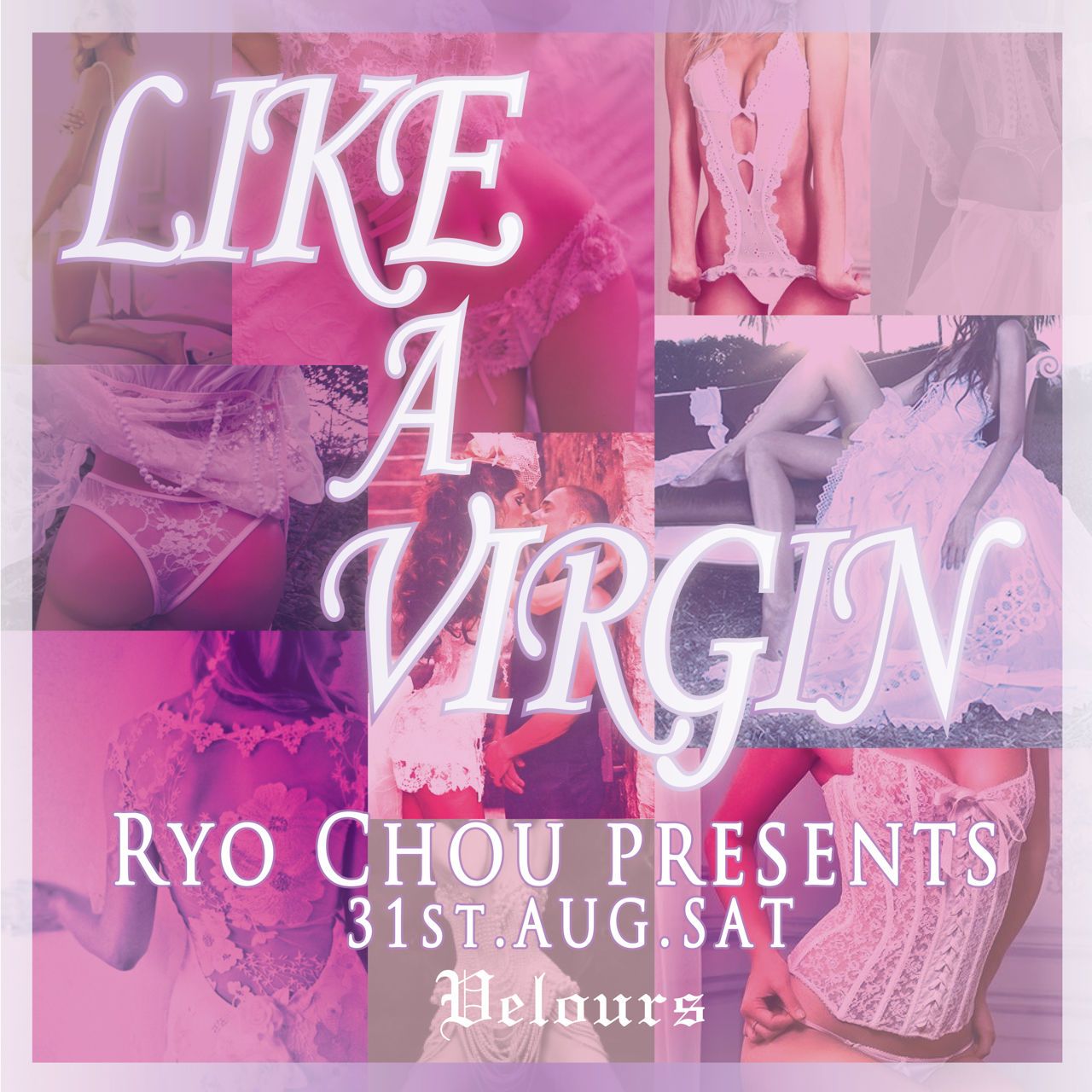 こだわりのコンセプトとパーティーメイクに定評のある「Ryo Cho Presents」.。今回みなさんにお届けするのは80′s NIGHT!!不朽の名作であるマドンナの「LIKE A VIRGIN」からインスピレーションを受けてイメージするバージンの花嫁、ドレスコードの白・パールを中心にスタイリッシュな装いでお越しください!!ショータイムには大好評のミスキャバレッタが登場。今回も魅惑のバーレスクタイムで皆様に驚きと感動をお届けします!出演者も各方面で活躍する豪華アーティストが揃い、さらにビッグなシークレットゲストの出演も決定!!夏の終わりにとびきりの一夜をお過ごしください。