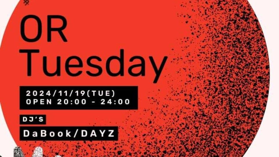 2024.11 19 TUE OR TUESDAY iFLYER: 353902 ALLMIX Facebook Twitter DATE: 2024-11-19 TUE OPEN: 20:00 VENUE: OR TOKYO PRICE: FREE LINE UP: DaBook DAYZ DaBook DAYZ Facebook Twitter