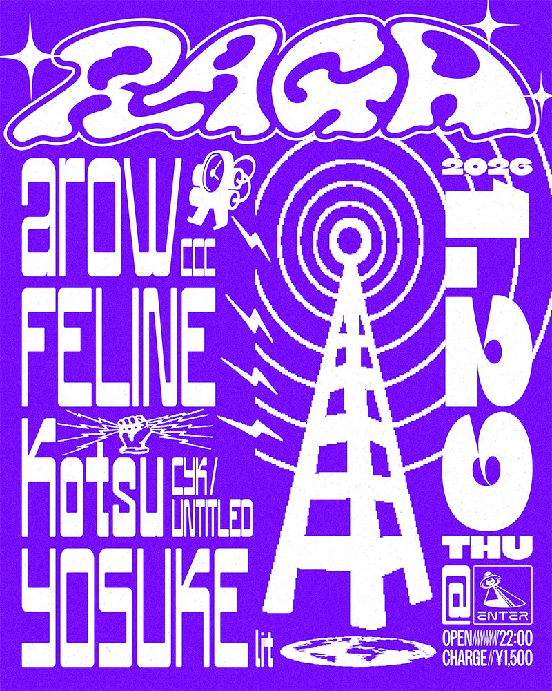 Vol.4となる今回は、arow (CCC)、FELINE、Kotsu (CYK | UNTITLED)と、シーンを自在に行き来し、数々のダンスフロアに熱狂を生み出し続けてきた面々がラインナップ。