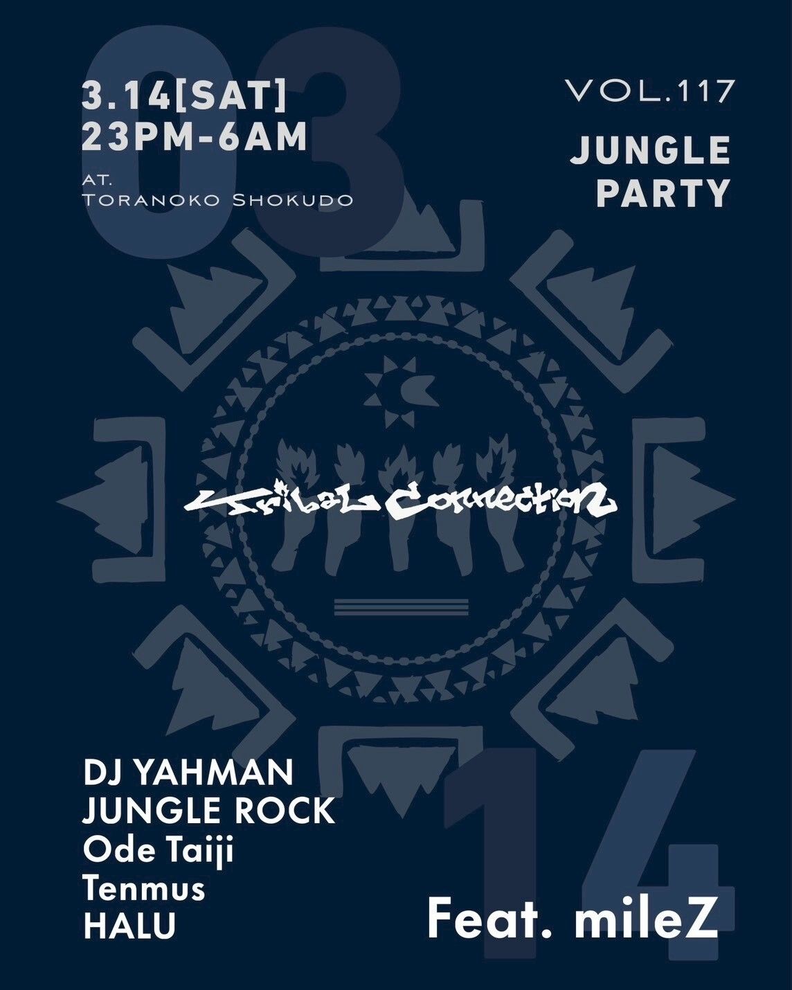 2009年に始動したTribal Connectionは、現在、DJ YAHMAN、JUNGLE ROCK、大出泰士、Tenmus、HALUの5人で構成。各自のバックグラウンドを軸に多角的なジャングル活動を行い、渋谷の虎子食堂をホームに、同名のジャングル・パーティーを開催中。