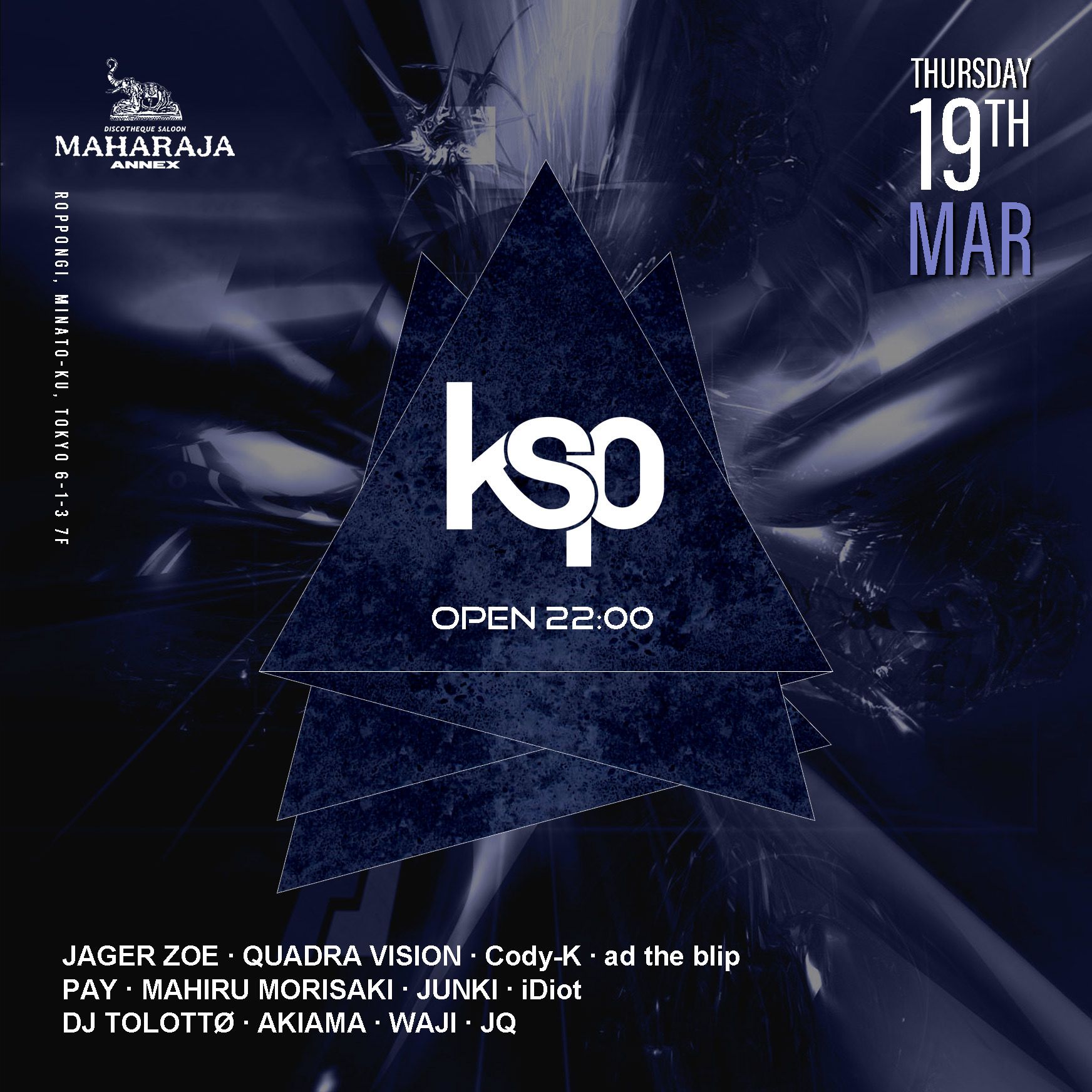 KSPが主催する世界標準のサウンド空間で、特別なダンスミュージックイベントを開催します!今回のパーティーでは、テクノとテックハウスに焦点を当て、夜通し楽しめる魅力的な音楽体験をご提供します。