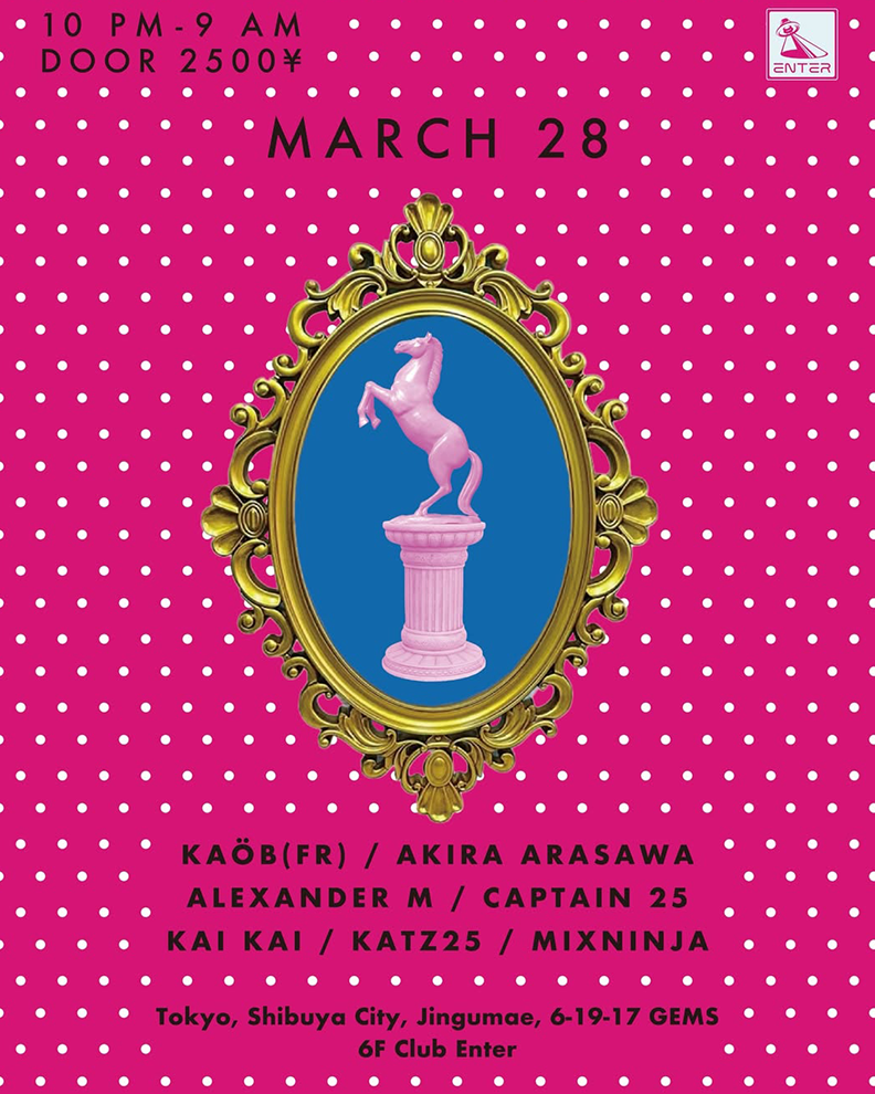 2026.03 28 SAT SONDER iFLYER: 359012 HOUSE TECH HOUSE Facebook Twitter DATE: 2026-03-28 SAT OPEN: 22:00 VENUE: ENTER shibuya PRICE: ¥2500 Door LINE UP: KAÖB (FR) AKIRA ARASAWA ALEXANDER M CAPTAIN 25 KAI KAI KATZ25 MIXNINJA SONDERが超強力なラインナップと、フランスからのミステリアスで魔法のようなスペシャルゲスト Kaöb を迎えて帰ってくる。 音楽、エネルギー、そしてそれぞれの人生のストーリーがダンスフロアで交差する特別な夜。 ディープなグルーヴ、催眠的なリズム、そして Sonder にしか作れない唯一無二の空間を体験せよ。 私たちと一緒に感じて、踊り明かそう。 Sonder — この瞬間は永遠に生き続ける。 Open 22:00 ¥2500 Door ※本公演では20歳未満の方のご入場は一切お断りさせて頂きます。 年齢確認の為、ご入場の際に全ての方にIDチェックを実施しております。 写真付き身分証明証をお持ち下さい。 Kaöb · Kaöb @ Amaluna - Paris Facebook Twitter