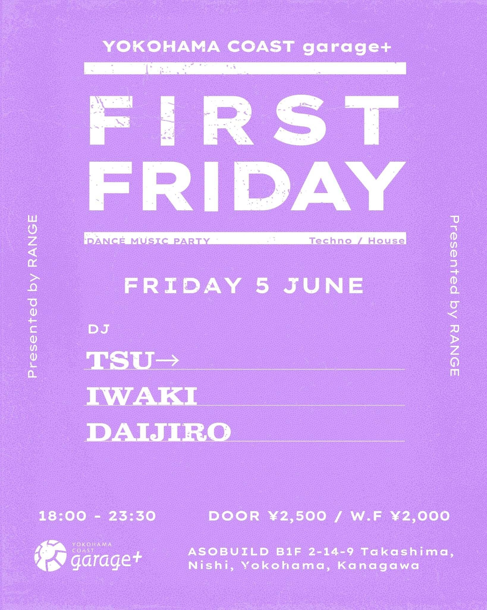 横浜駅直通・アソビル地下1階 「YOKOHAMA COAST garage+」 で、第1金曜に開催する新レギュラーパーティー「RANGE FIRST FRIDAY」。