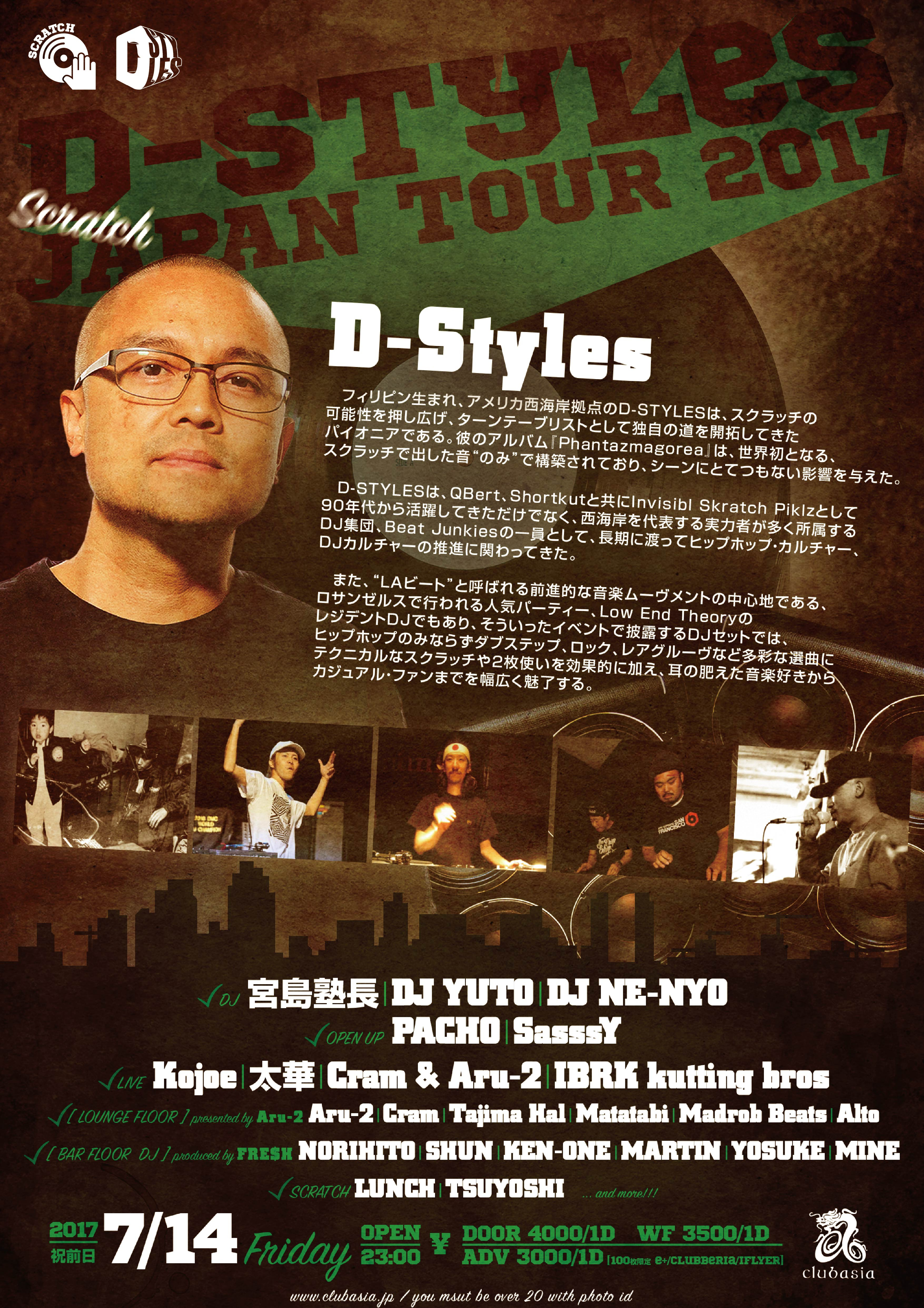 独特なフロウのスクラッチを奏で、ターンテーブリズム界で絶大な人気を誇っているD_stylesに加え、日本スクラッチ界の至宝と称される宮島塾長、昨年のDMC世界大会で見事1位に輝いたDJ YUTOも参戦。