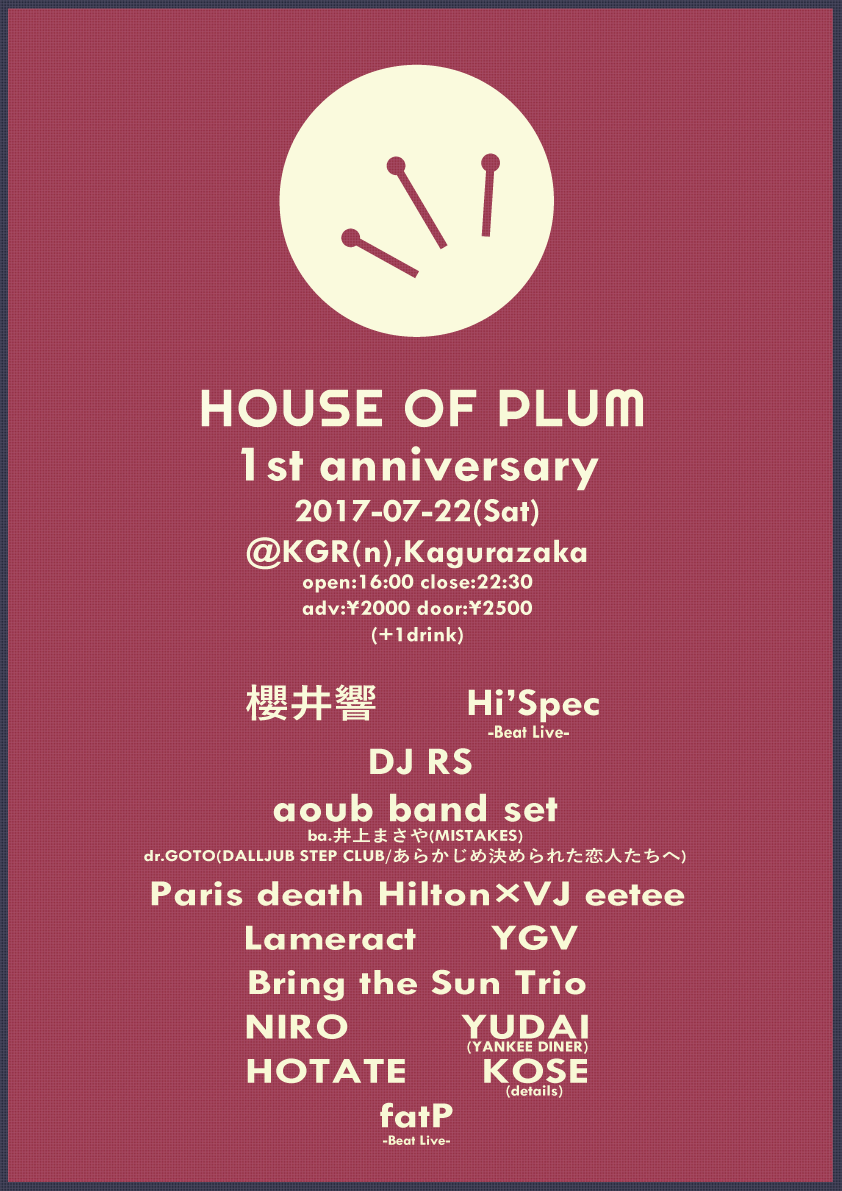 ‘’House of Plum’’がこの度一周年を向かえ特別イベントが