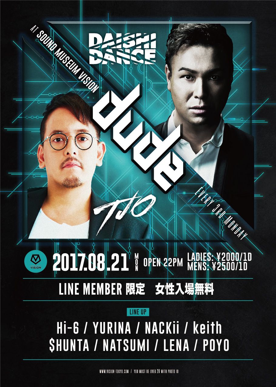 - ¥2000(1D) LADIES ¥2500(1D) MENS ◆LINE MEMBERの女性入場無料!!