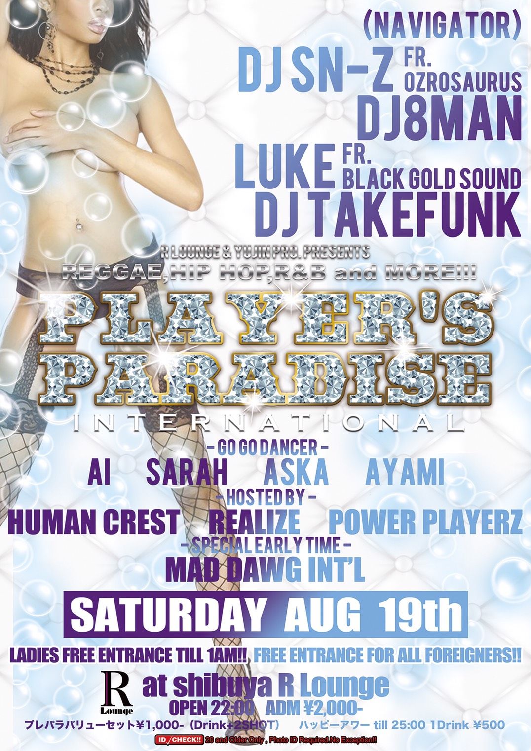 1時まで女性入場無料!!LADIES FREE ENTRANCE TILL 1AM