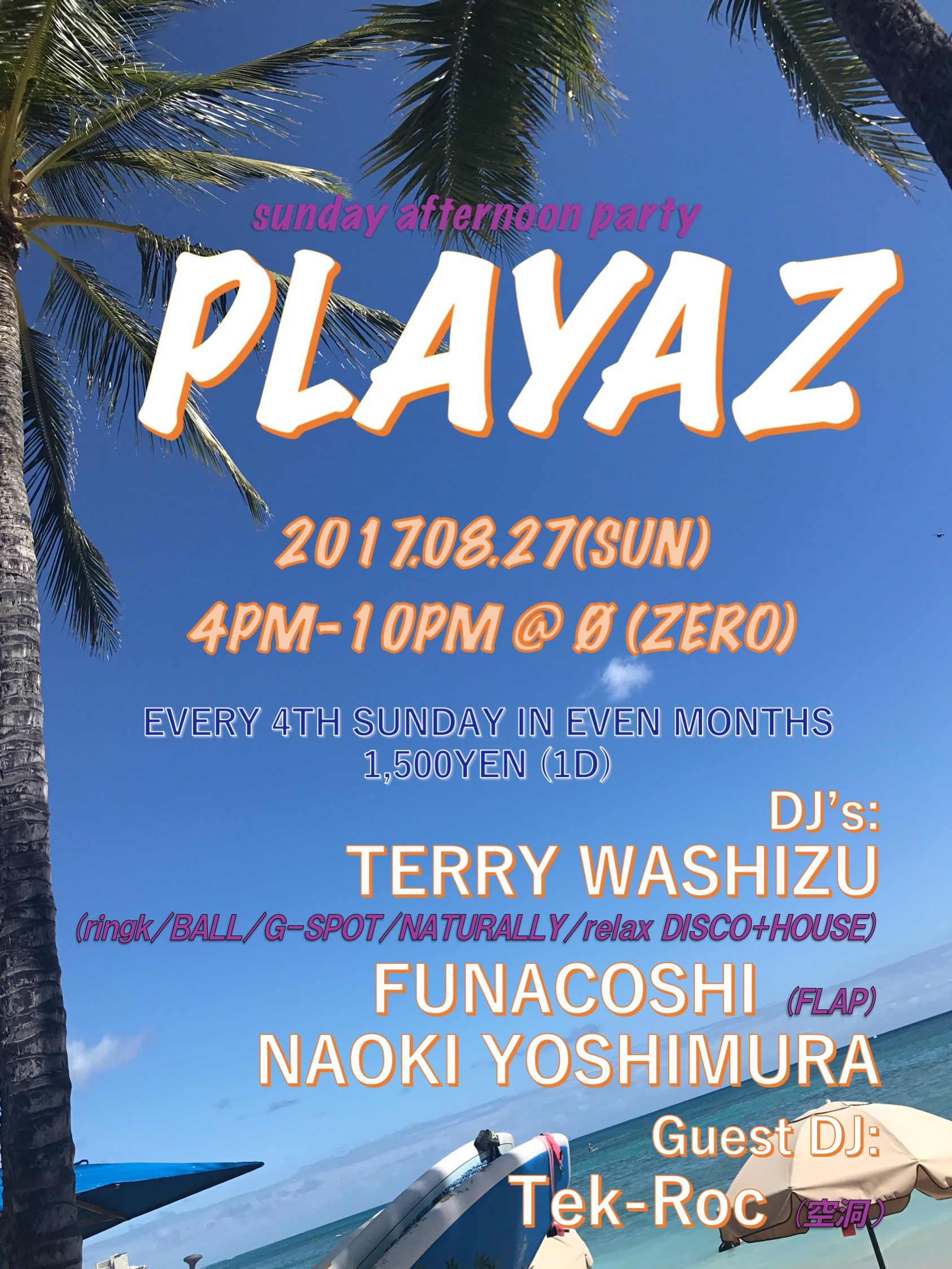 隔月第4日曜日の午後にハウス、ガラージ/ディスコクラシックスの気持ち良い空間を創出するパーティー「PLAYAZ」。