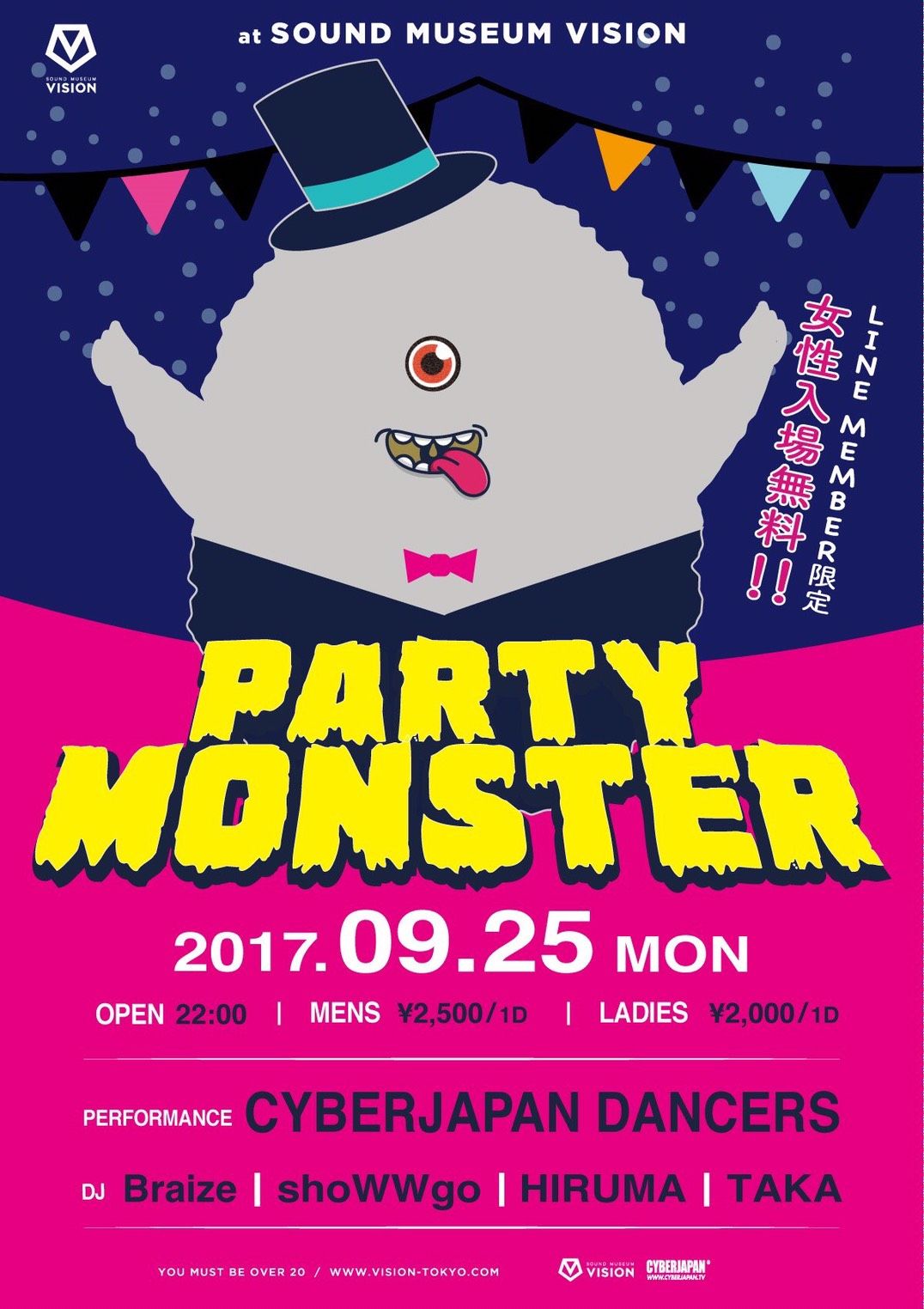 - ¥2000(1D) LADIES ¥2500(1D) MENS ◆LINE MEMBERの女性入場無料!!