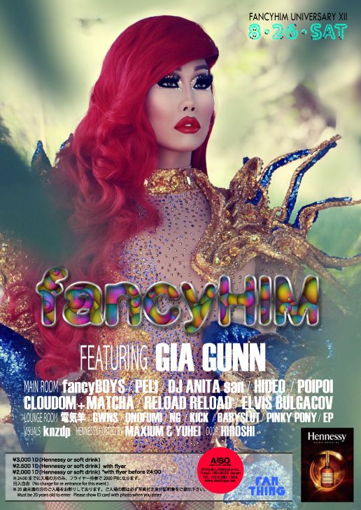 - [SPECIAL GUEST]GIA GUNN(From LA) [MAIN ROOM]fancyBOYS, PELI, DJ ANITA san, HIDEO, CLOUDOM+MATCHA, RELOAD RELOAD, POIPOI, ELVIS BULGACOV [LOUNGE ROOM]電気羊, GWNS, UNOFUMI, KICK, NG, BABYSLUT, EP, PINKY PONY [VISUAL BY]knzdp [HENNESSY HOSTED BY]MAXIM & YUHEI [DOOR]HIROSHI