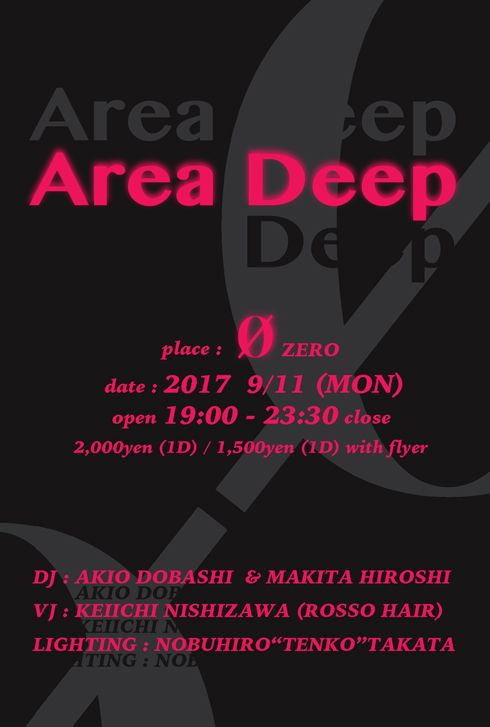 5年目に突入したArea Deep、音と光、映像の融合を追求していくparty。今回はレギュラークルーにて開催。