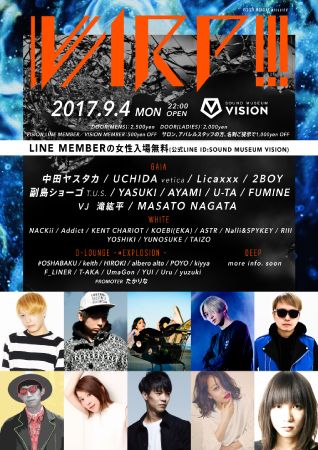 - ¥2000(1D) LADIES ¥2500(1D) MENS ◆LINE MEMBERの女性入場無料!!