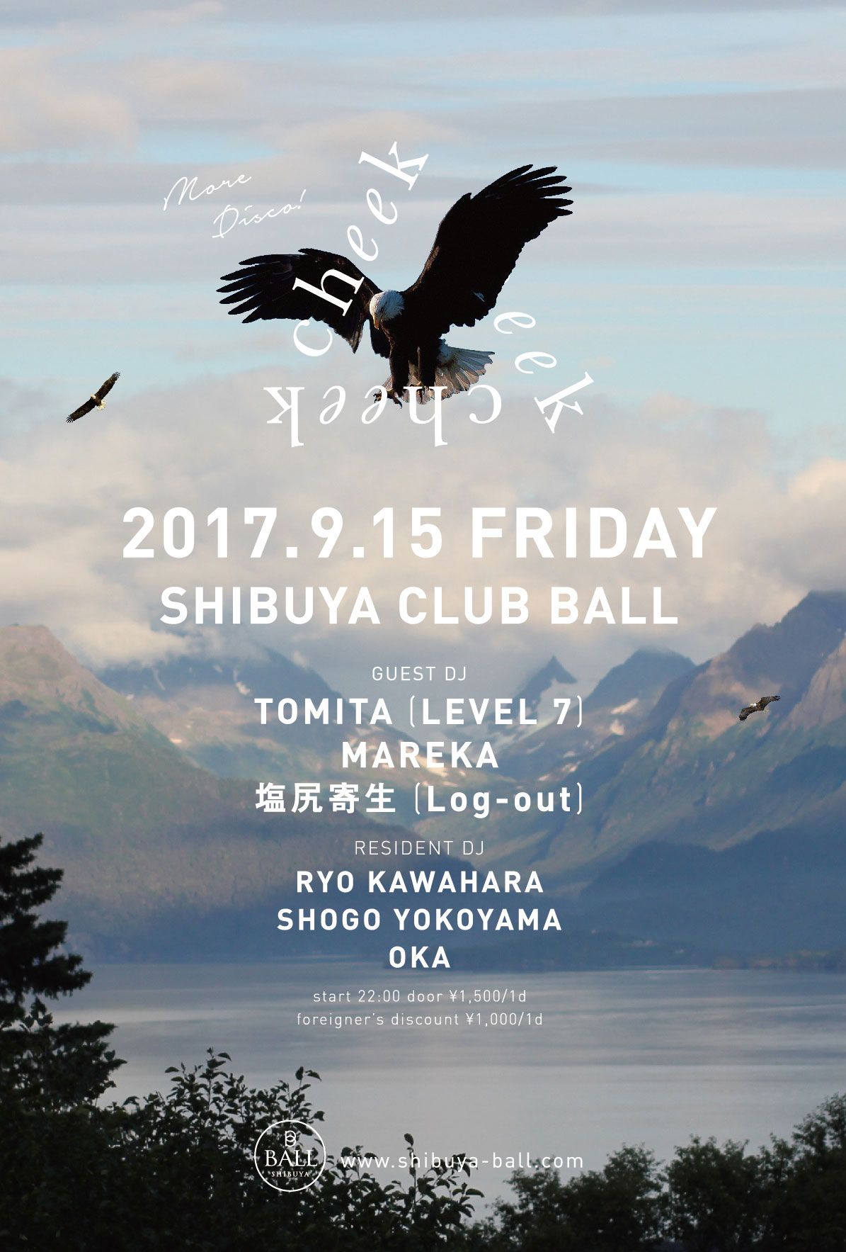 奇数月の第3金曜日、Ryo Kawahara / Shogo Yokoyama / Oka の3人がレジデントを務める、cheek cheek cheek。club BALLの良質なサウンドシステムを元に、soul,disco,rare grooveを中心に、新譜も交えてアナログでプレイする事にこだわったパーティー。