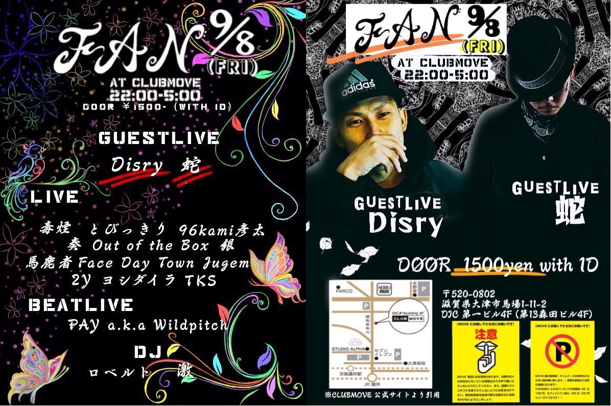一夜限りの特別メンツで行われる『FAN』にてお客様を待っているのは滋賀、京都、大阪、よりどりみどりの独特な音楽。普段の花金に少し違った刺激を。