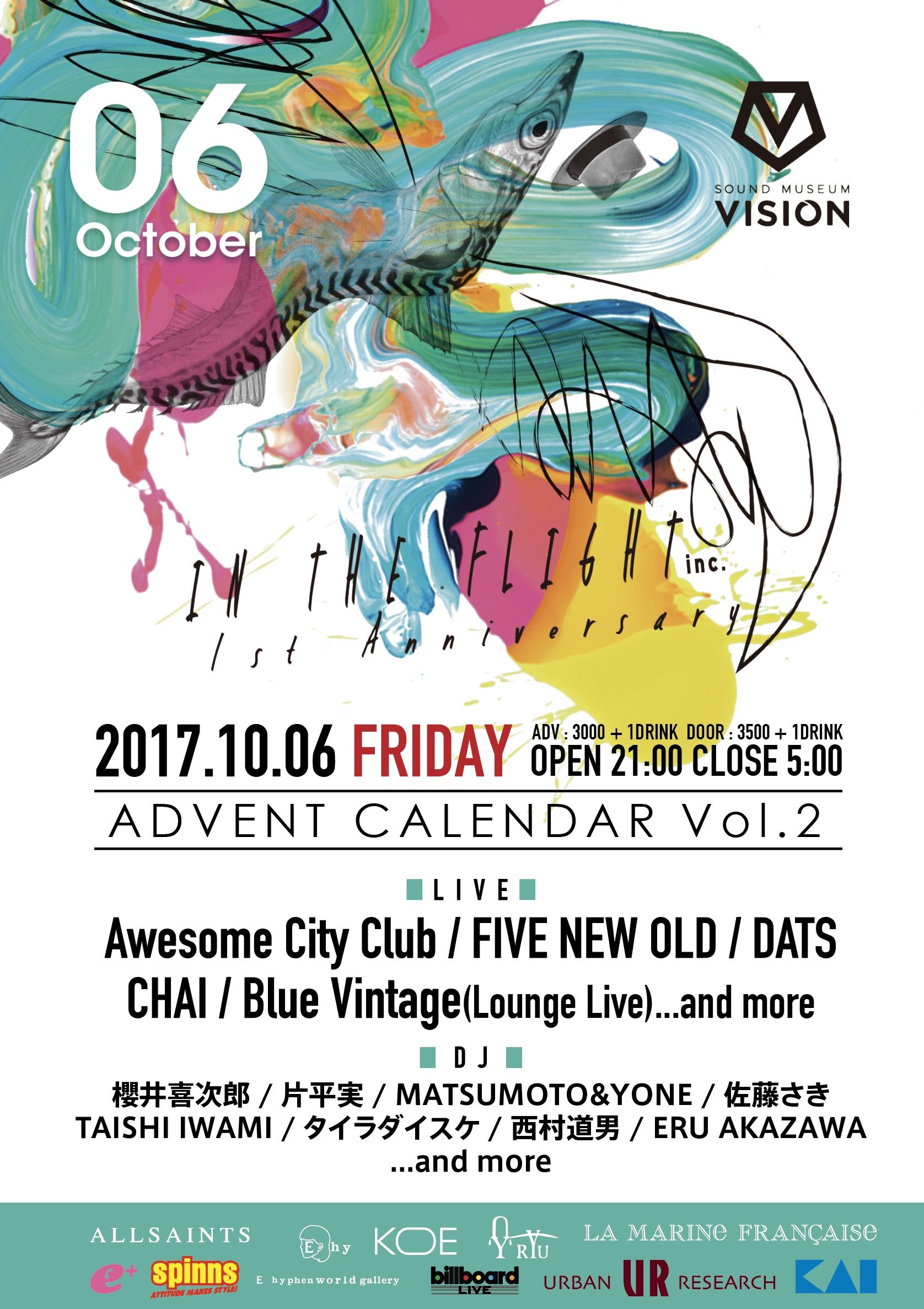 DJ:櫻井喜次郎 / 片平実 / MATSUMOTO&YONE / 佐藤さき / TAISHI IWAMI / タイラダイスケ / 西村道男 / ERU AKAZAWA